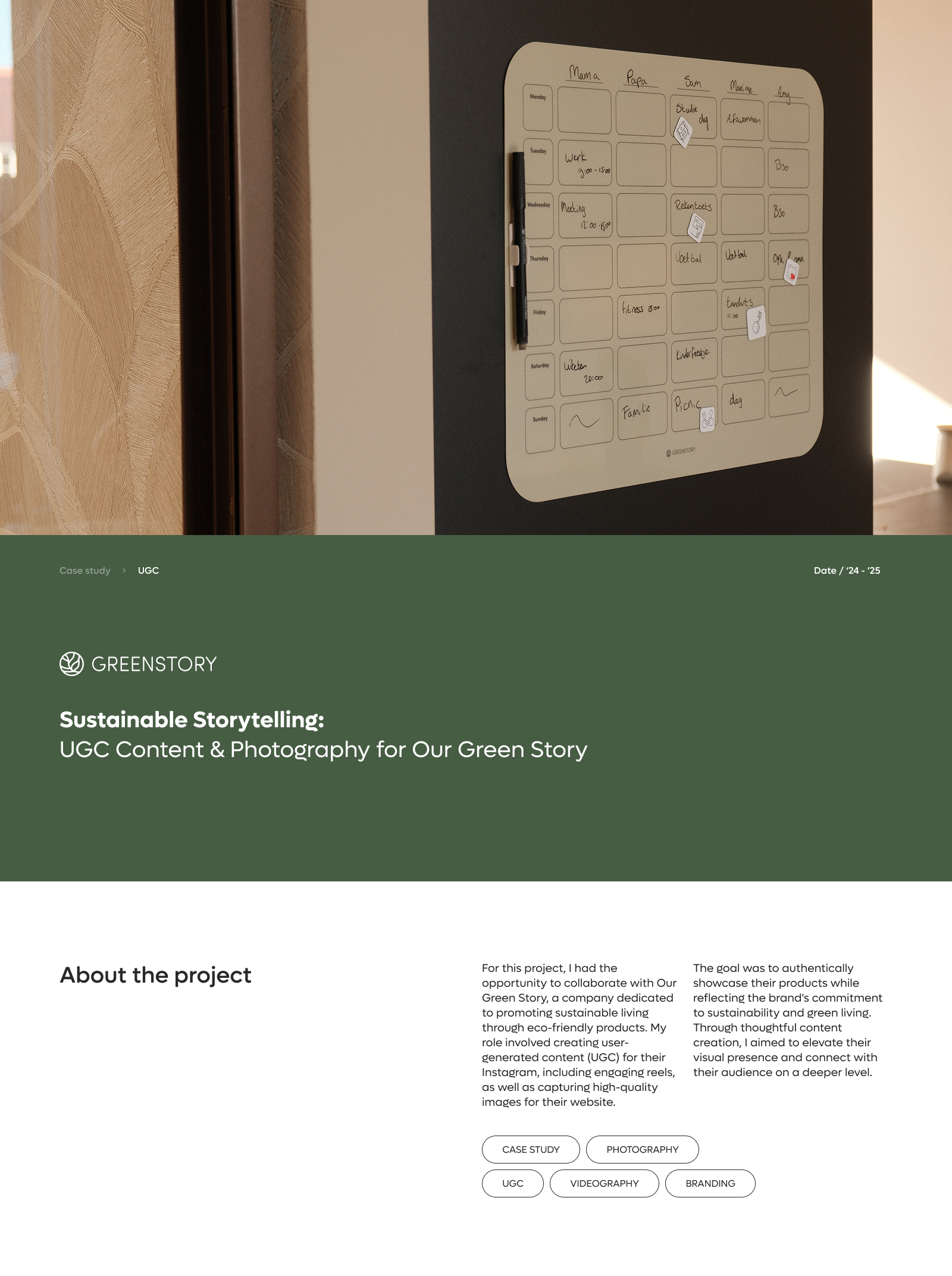 This project showcases a collaboration with Our Green Story, focusing on the creation of high-quality user-generated content (UGC) to highlight the brand’s commitment to sustainability. Through engaging Instagram reels and carefully curated photography, the visuals authentically present the brand’s eco-friendly products in a way that resonates with their audience. This case study offers a look into the creative process and the impactful content developed for Our Green Story.